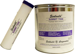 Sealweld Summit #7030 is our premium valve lubricant designed for use in a wide variety of applications. This specialty blend of synthetic oils, low-temperature additives and micronized PTFE particles makes this product ideal for frequently-operated and worn valves with minor seat leakage. Summit #7030 is tacky, yet pliable, which makes it resistant to washout in year-round service on valves ranging from ambient conditions to cold liquefied gases.
