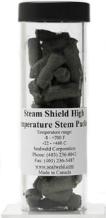Steam Shield Sticks are blended with specially processed high-temp polymer particles for extremely high-temperature sealing capability.